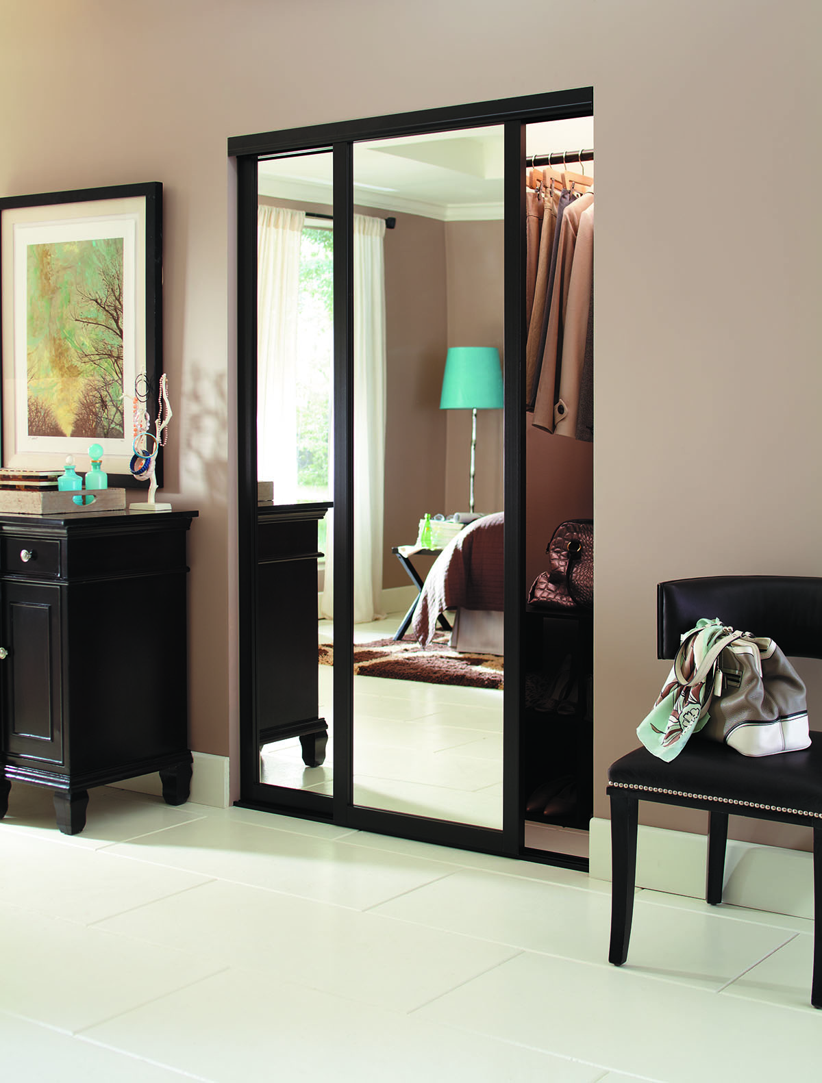 Mirrored sliding wardrobe doors come in a wide range of styling and personalization options and can be used in numerous applications, while at the same time they give a room a much bigger appearance and feel. And since they aren’t swinging on hinges, every possible space in the closet is reachable and utilized!